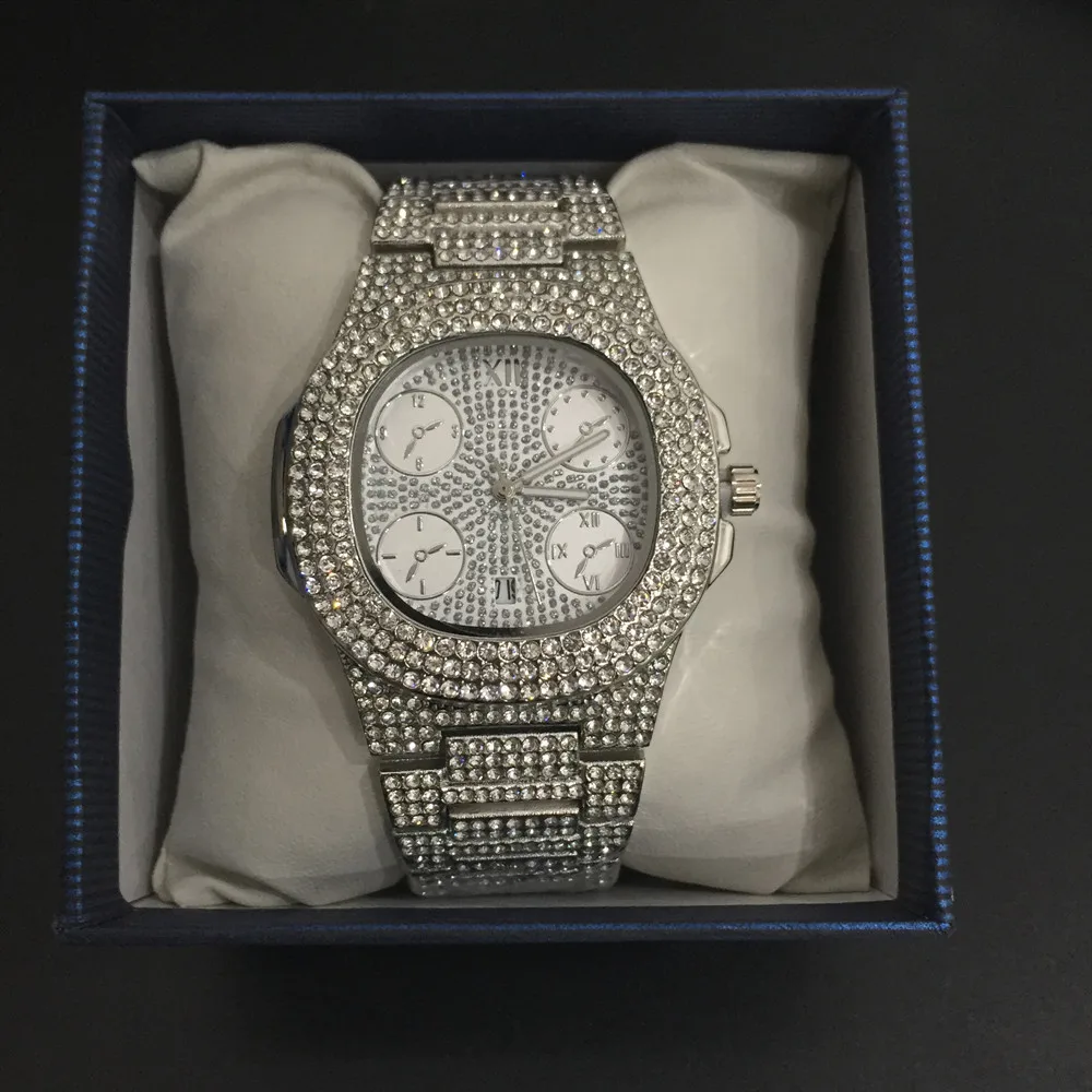 Роскошные мужские часы Майами с кристаллами в стиле хип-хоп, мужски...