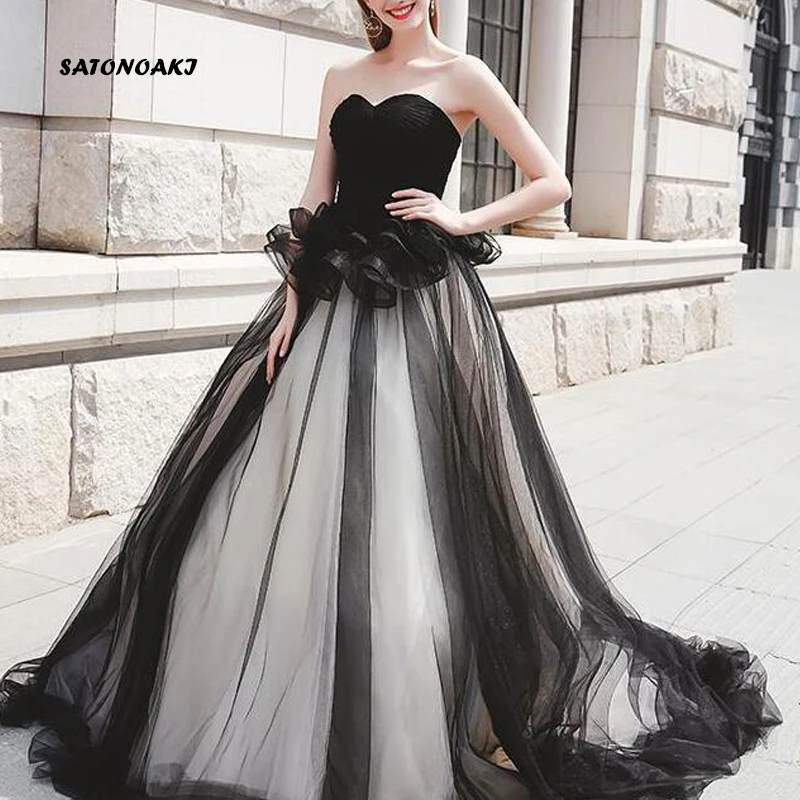 Черные Готические трапециевидные свадебные вечерние платья 2021 с о...