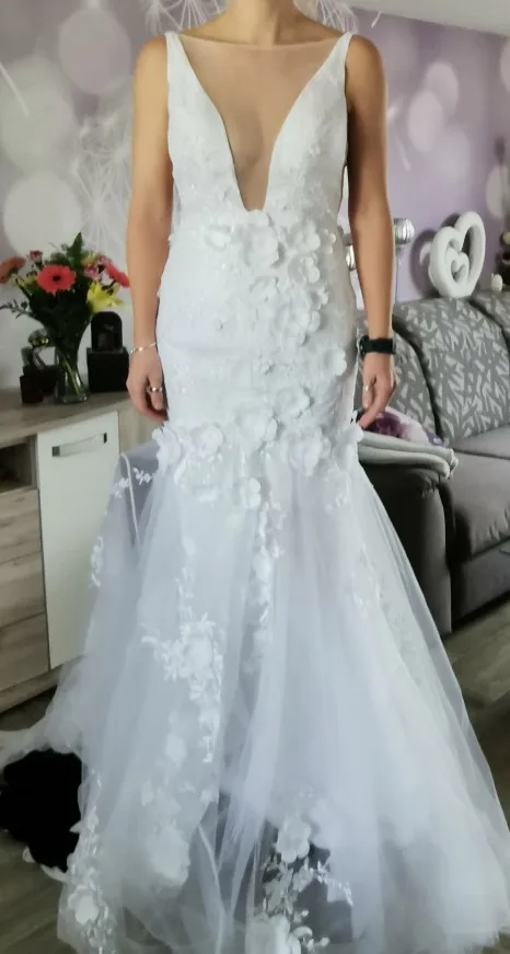 Винтажное свадебное платье русалки на тонких бретельках 2021 с v-образным вырезом и открытой спиной, кружевные аппликации, 3D Цветы, кантри, свадебное платье размера плюс на заказ