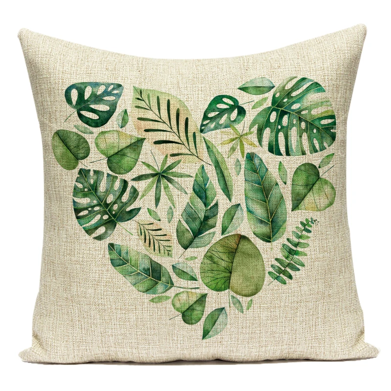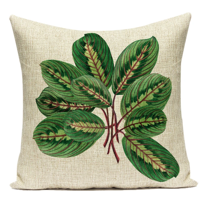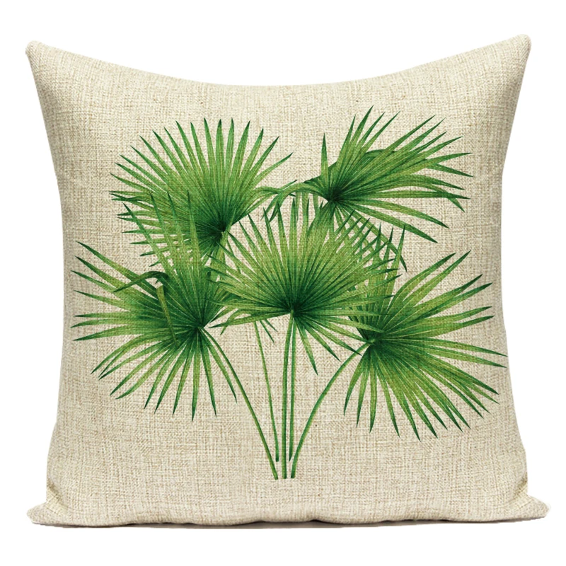 Декоративные диванные подушки Чехол из полиэстера зеленые лист троп...