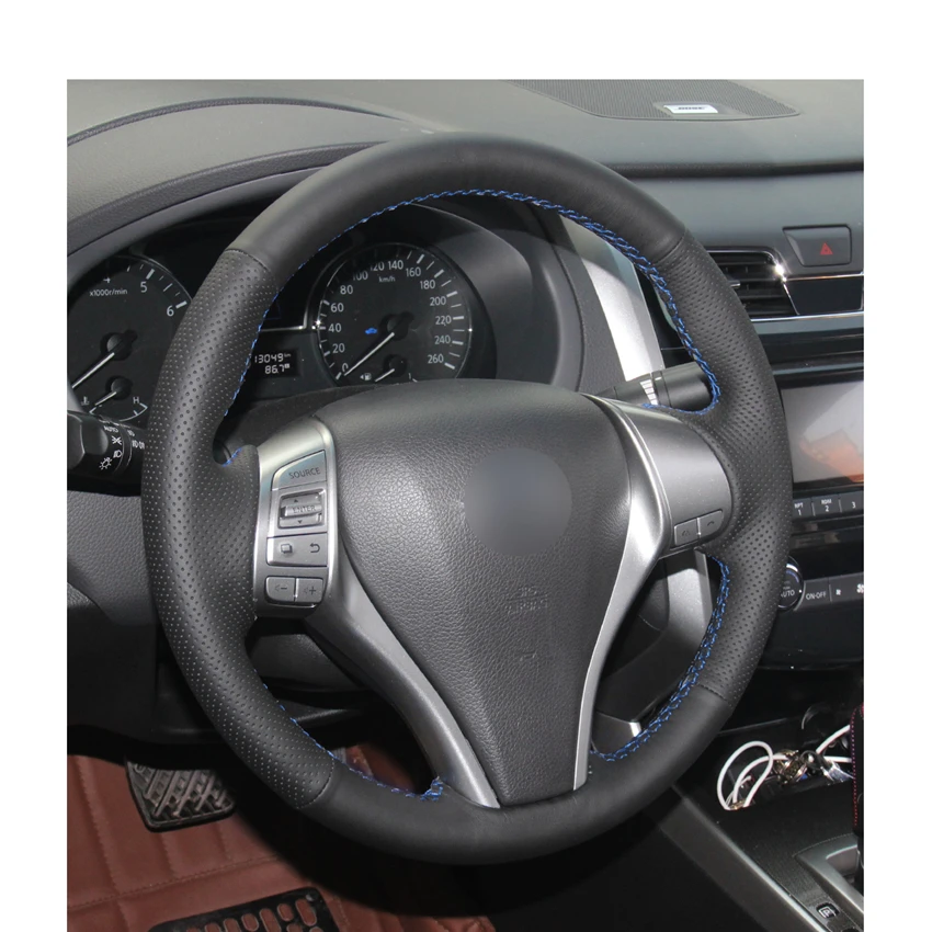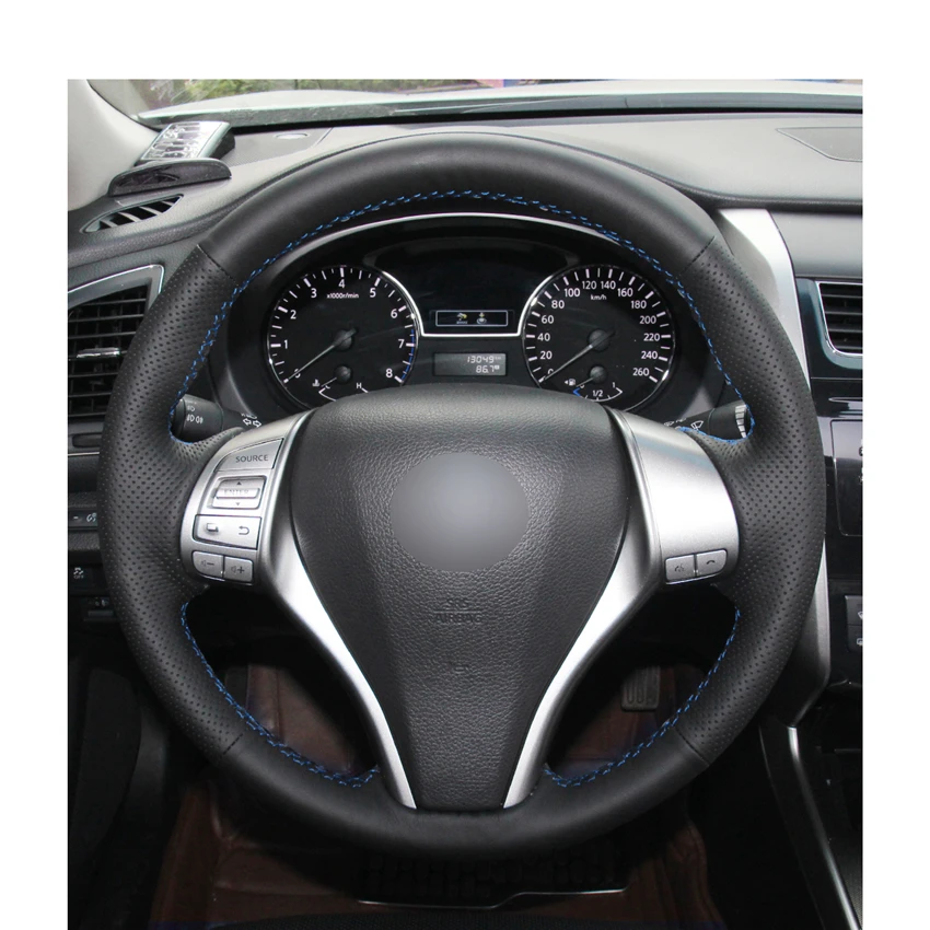 Рука сшитый черный искусственная кожа PU чехол рулевого колеса автомобиля для Nissan Teana Altima X-Trail Qashqai Tiida Pulsar Navara