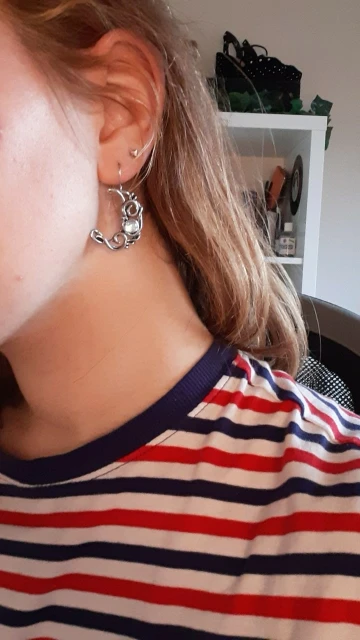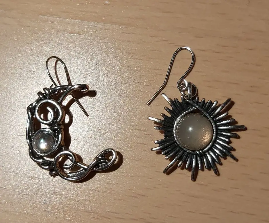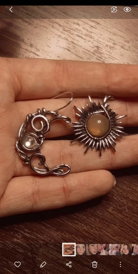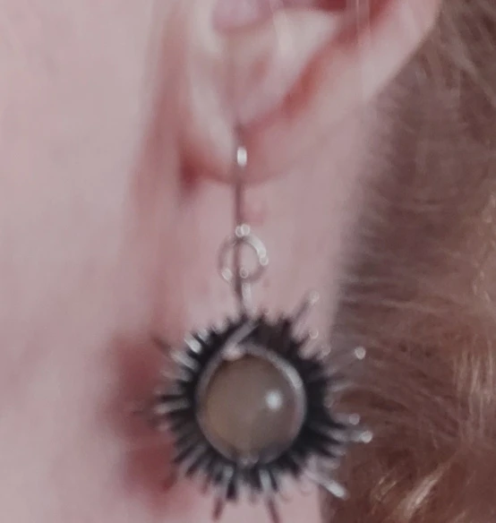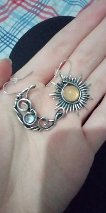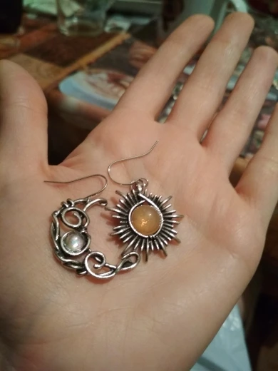 серьги мне понравились, это не обычно и выглядит как ручная работа! имейте ввиду, что у одной сережки нет крепления в виде маленького колечка, но мне это не мешает! спасибо!