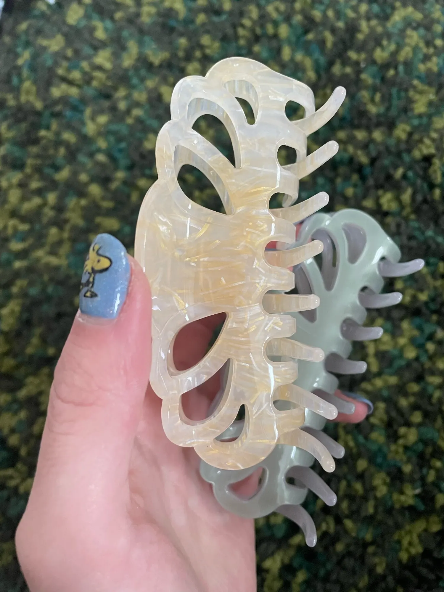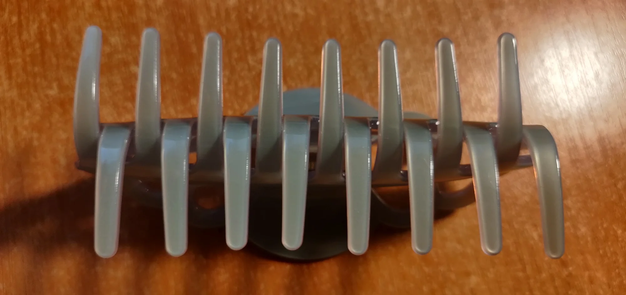 Заколка была очень хорошо упакована, пришла целая. Цвет приятный, дизайн такой же. Единственный недостаток - тяжело ходит пружинка или детали как-то слишком близко соединены, из-за этого прям тяжело открыть крабик. Надеюсь, что со временем расходится как-то.