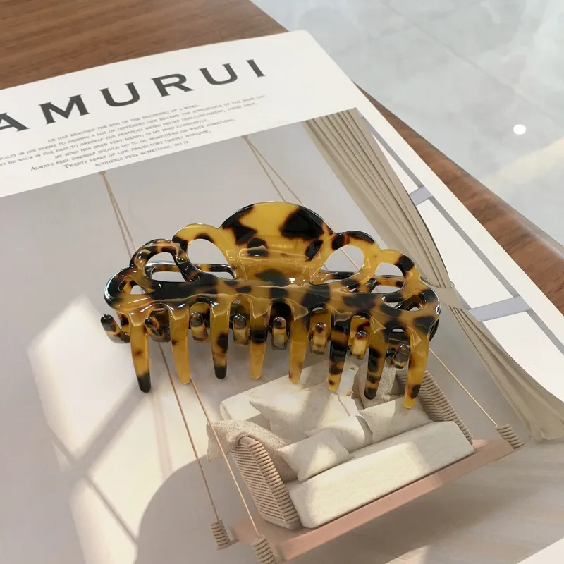 Корейские акриловые женские заколки-крабы для волос, очаровательные однотонные леопардовые женские заколки для волос в стиле ретро, инструмент для укладки волос