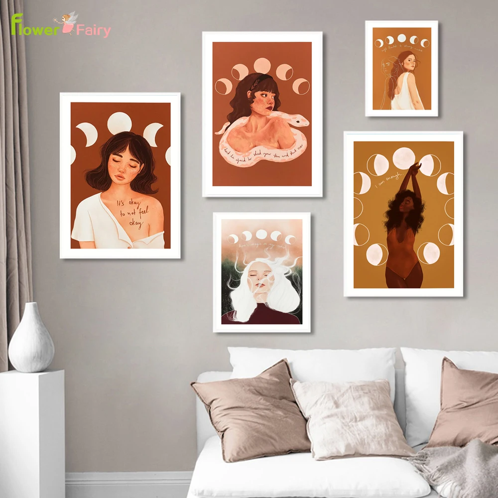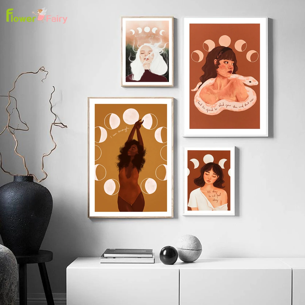 Современная Картина на холсте с изображением Луны фазы леди змеи девушка мощность скандинавский плакат Настенные картины для гостиной домашний Декор без рамки