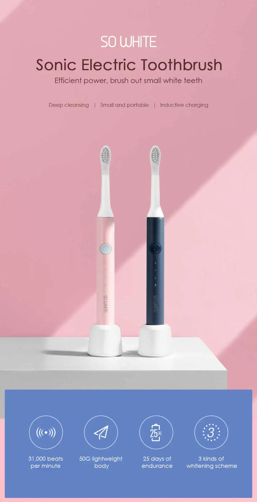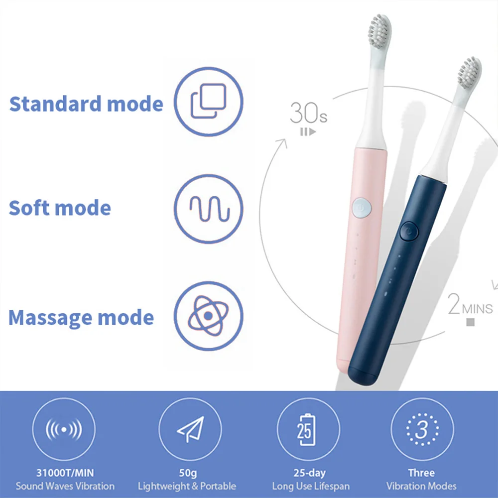 31000 раз/мин волна | 50 г легкий вес тела | Длительное использование 25 дней | 3 режима очистки