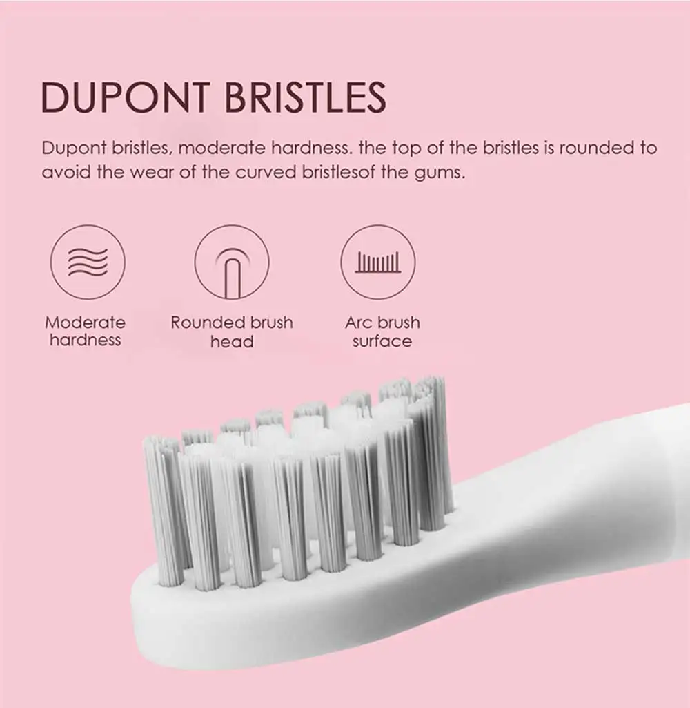 ● Принимает американские щетинки DuPont, средней твердости, а верх щетины округлый и гладкий, чтобы предотвратить истирание десен.● Головка щетки изготовлена из мягкой резины, чтобы не повредить рот, когда вы чистите зубы.