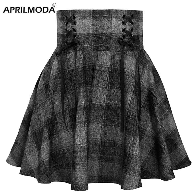 Готика, Харадзюку уличная черного и серого цвета в клетку, женские ботинки в стиле панк; Женские ботильоны в мини-платье с коротким и широким подолом в стиле хип-хоп Повседневные колледжа в стиле лолита в стиле стимпанк винтажные юбки
