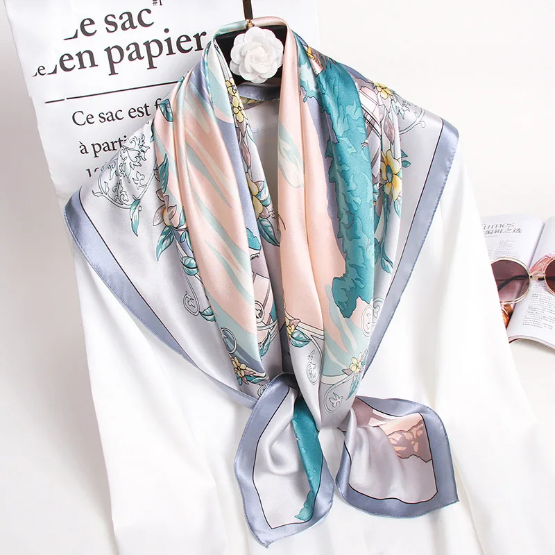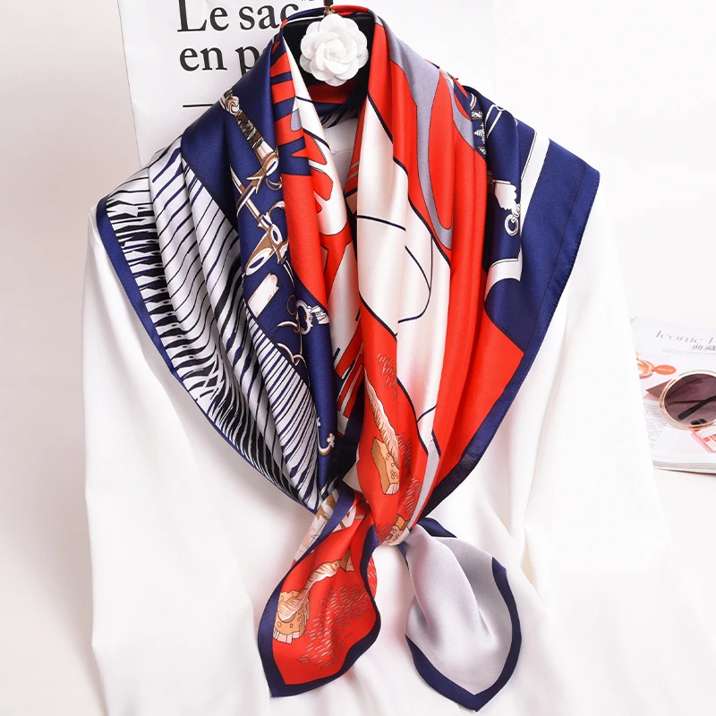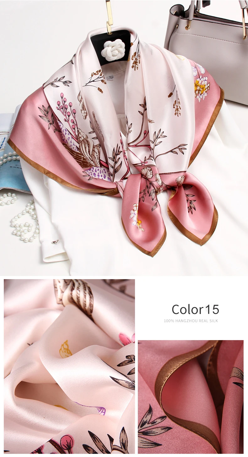 100% натуральный шелк, квадратный шарф, женский платок с принтом, Женская бандана из чистого натурального шелка, женское ожерелье, 88x88см