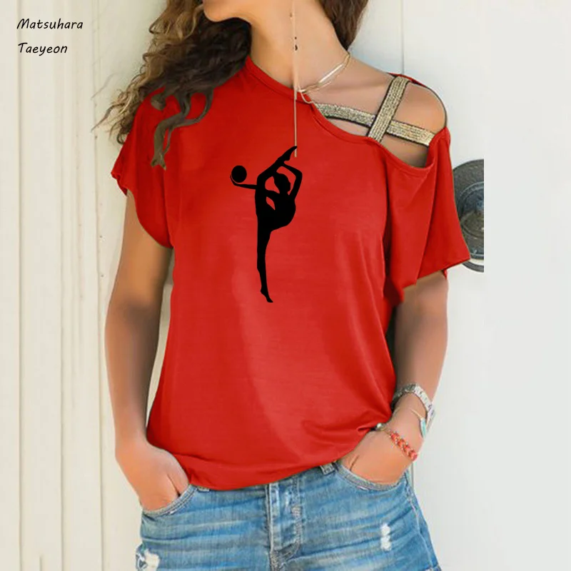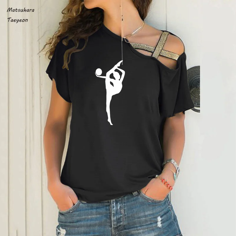 Летняя футболка с коротким рукавом, женская модная спортивная футболка для гимнастики, женская футболка с асимметричным скошенным перекрестным поясом, футболка оверсайз