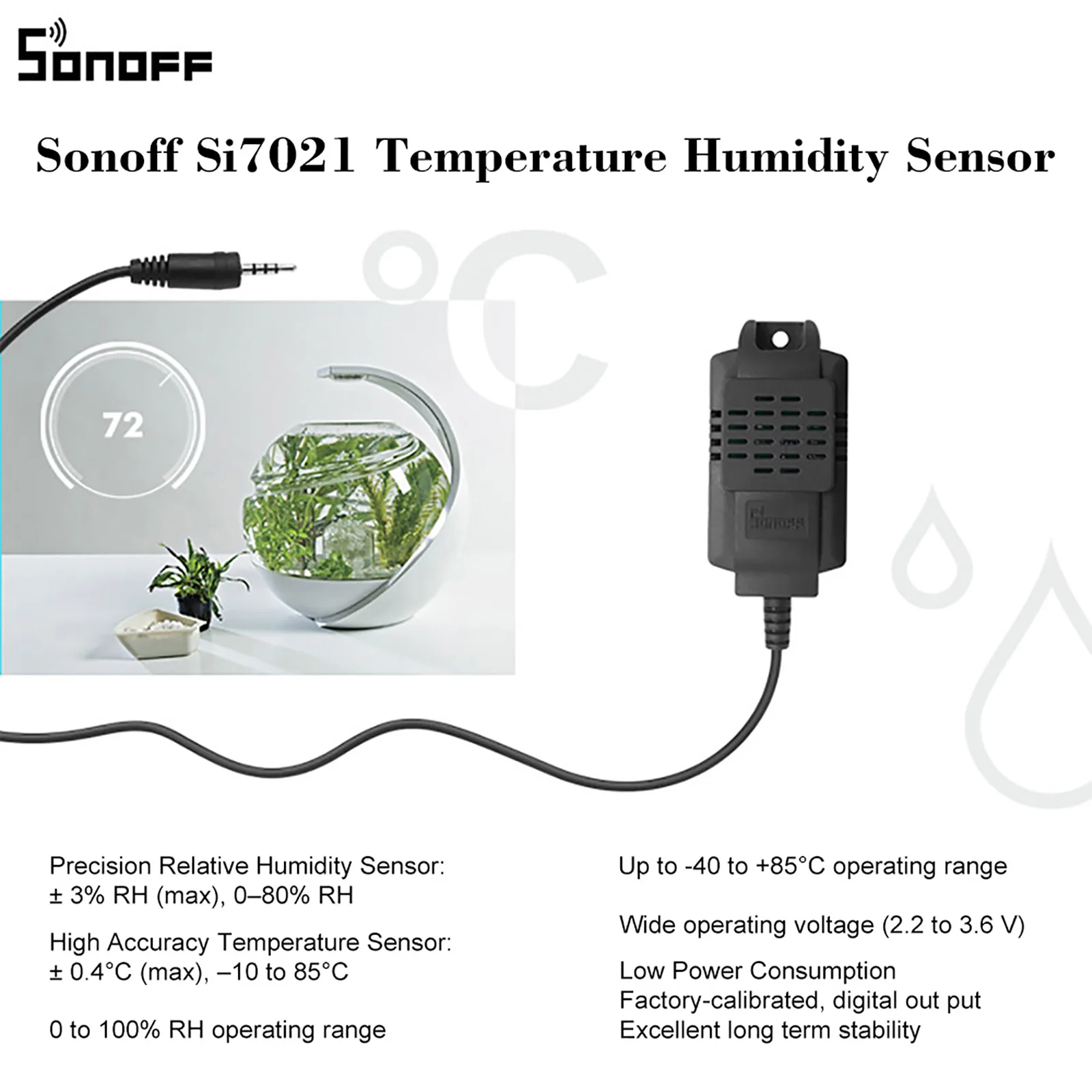 Обзор:Цифровой датчик температуры и влажности Sonoff Si7021 имеет откалиброванный цифровой сигнал. Он использует специальную технологию сбора цифрового модуля и технологию измерения температуры и влажности, чтобы гарантировать, что датчик имеет очень высокую надежность и отличную долгосрочную стабильность. Датчик включает интегрированную однокристальный датчик температуры и влажности, соединяющий присоединяемое устройство для высокопроизводительный 8-битный MCU. Все эти функции обеспечивают датчик Si7021 с превосходным качеством и высоким качеством.Особенности:* Измерение относительной влажности и температуры.* Все фабричные Калиброванные, цифровой выход. Отличная долгосрочная стабильность.* Дополнительные детали не требуются. Подключи и работай.* Ультра-быстрая реакция, способность анти-помех, ультра-низкое энергопотребление и экономичность.• Сенсор имеет 2,5 мм 4-полюсный стерео Соединительный аудио штекер, который прекрасно работает с Sonoff TH10/TH16.* Датчик полностью взаимозаменяемый.Характеристики:Датчик относительной влажности: ± 3% RH (макс.), 0-80% RHВысокая точность Температура Сенсор: ± 0,4 °C (макс.), а также от-10 ° до 85 °CОт 0 до 100% рабочий диапазон RHРабочий диапазон до-40 до + 85 °CШирокий диапазон рабочего напряжения (2,2 до 3,6 V)Информация о посылка:Размер посылка: прибл. 8*5*3,5 см/3,15*1,96 * 1.38inВес посылка: прибл. 25 г/0,88 унцийУпаковочный лист:Датчик Sonoff Si70211