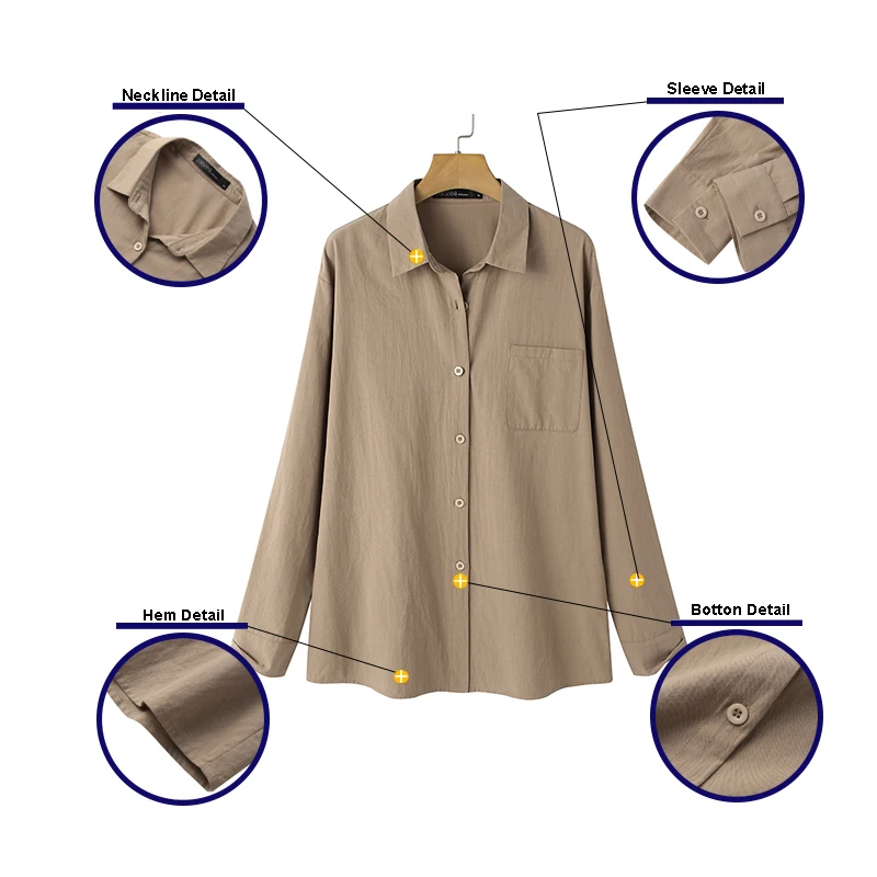 Посылка входит: 1 рубашкаМатериал: 100% хлопокЦвета: хаки, темно-синий, розовый, белыйРазмер: S,M,L,XL,2XL,Длина рукава: полный рукавВырез: отложной воротникУзор: однотонныйТолщина: тонкаяУкрашение: передний карманСтиль: Досуг, богемный, ретро, ЕвропаСезон: весна, лето, осень, зимаПрименение: семья, праздник, работа, путешествия