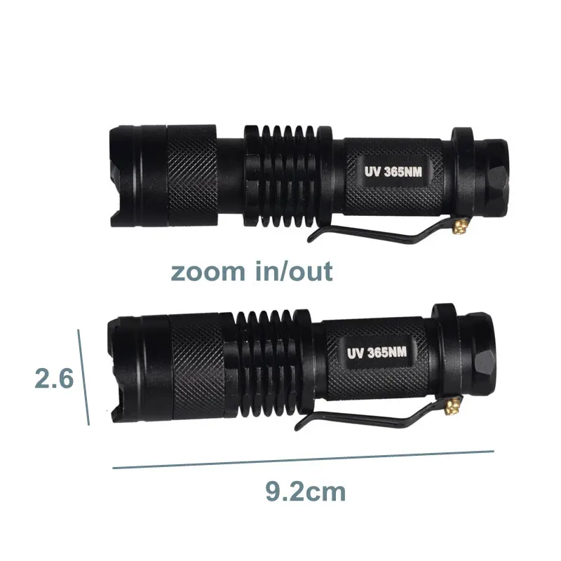 Светодиодная УФ-вспышка TMWT 365NM, фиолетовый Ультрафиолетовый фонарь ПА с регулируемым фокусом, питание от батареи AA или 14500