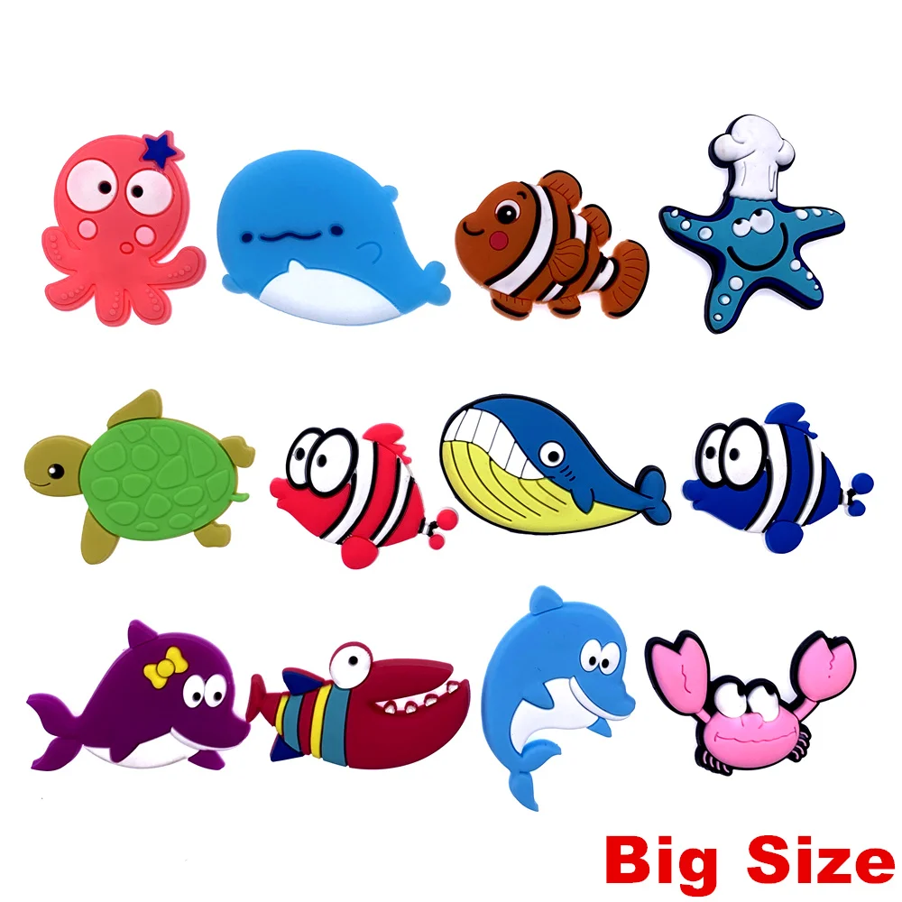Подвесные кулоны для украшений сделай сам из ПВХ, магнит большого размера с плоской задней частью для подвесок на холодильник, акулы, рыбы, животных, 10 шт.