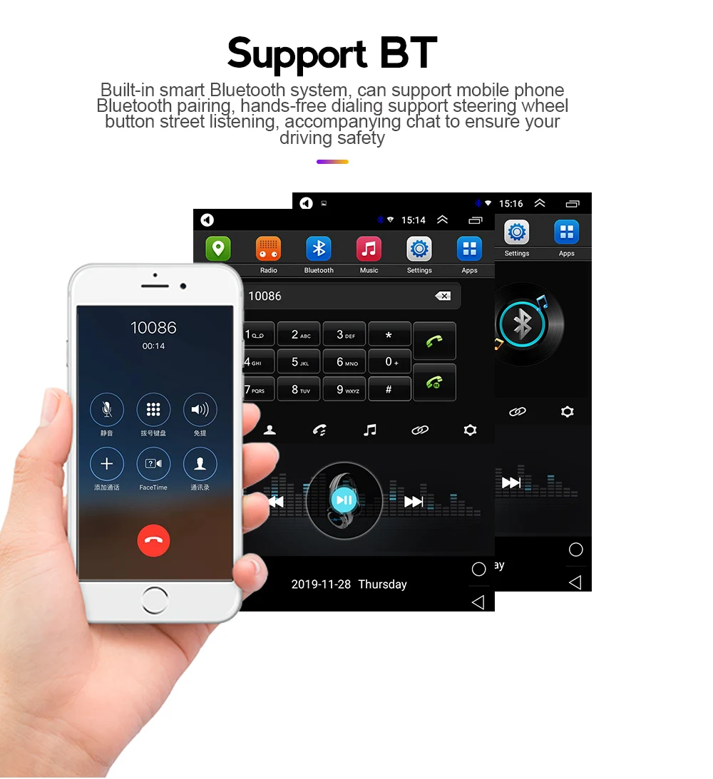 Автомобильная стереосистема оснащена встроенным Bluetooth и функцией телефонной книги. Вы можете синхронизировать телефонную книгу с вашего мобильный телефон на этот блок, а затем сделать мобильный телефон без рук удобным и быстрым. Вы также можете наслаждаться беспроводным воспроизведением музыки с вашего устройства bluetooth.