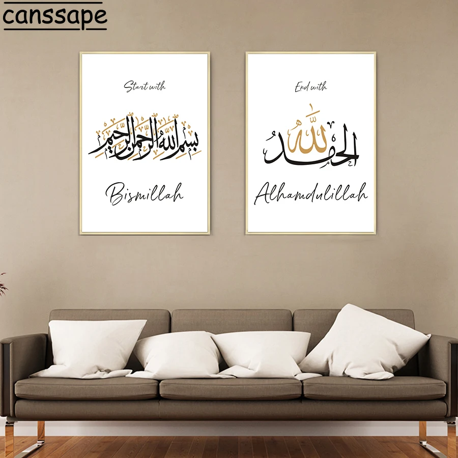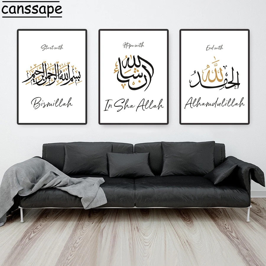 Современный исламского искусства плакат арабский холст с каллиграфией печати мусульманский настенная живопись котировки настенные картинки для Декор в гостиную