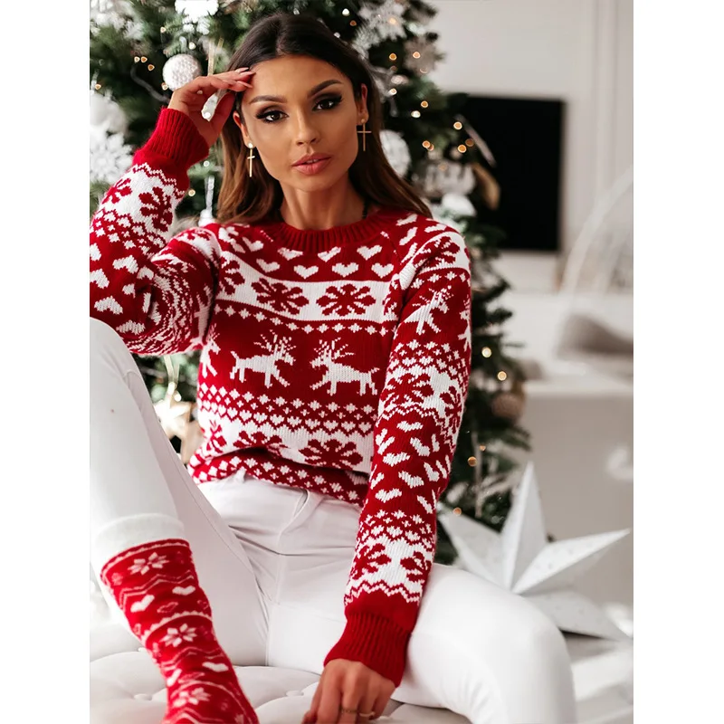 Новый женский Рождественский свитер 2020 Зимний вязаный свитер со снежинками свитера с оленем пуловер Mujer Sueteres Pull Femme Hiver Kobieta Swetry