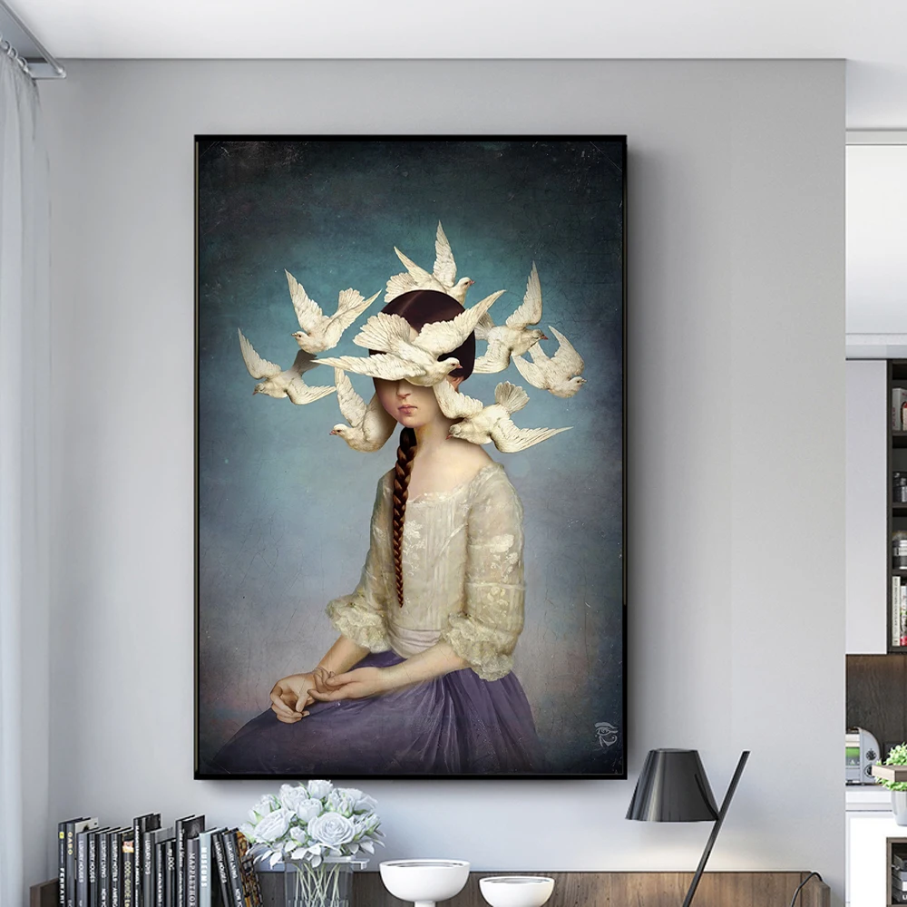 Птица мира окружает девушку холст настенные картины художественные плакаты и принты нордическое Искусство девушки картины для гостиной