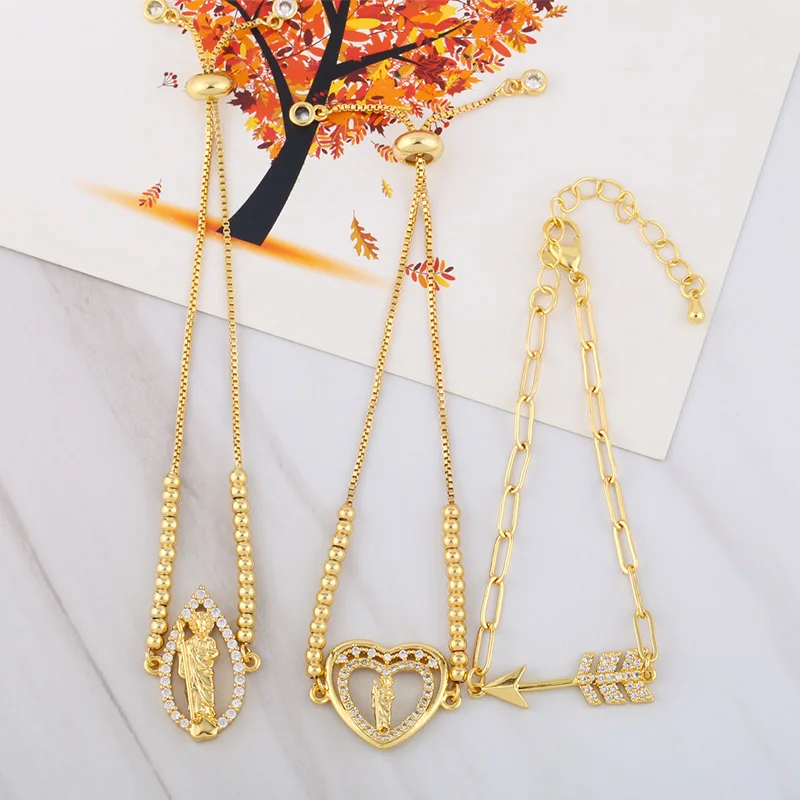 FLOLA золотая цепочка сердце Девы Марии браслеты из нержавеющей стали для женщин Шарм Рыбная кость браслет CZ Религиозные ювелирные изделия Дева Мария Гваделупская brtc69