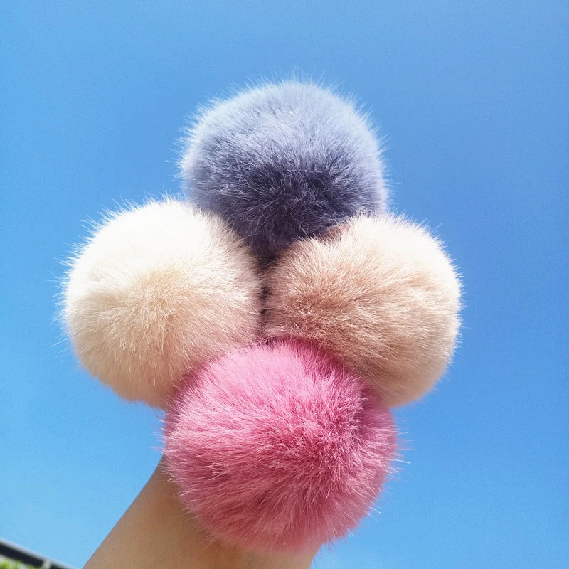 Резинка для волос с имитацией кроличьего меха и помпоном, мягкие те...