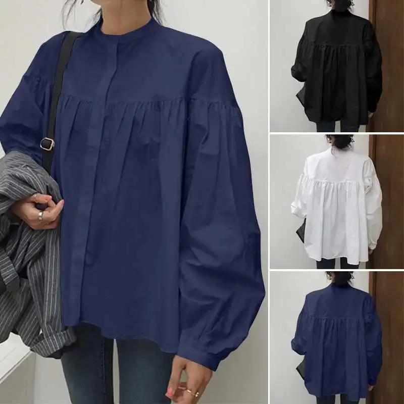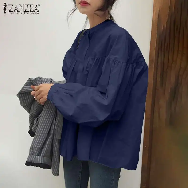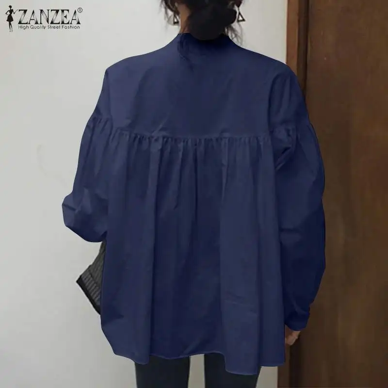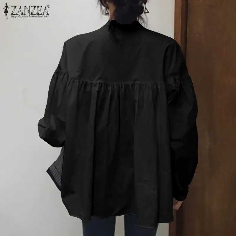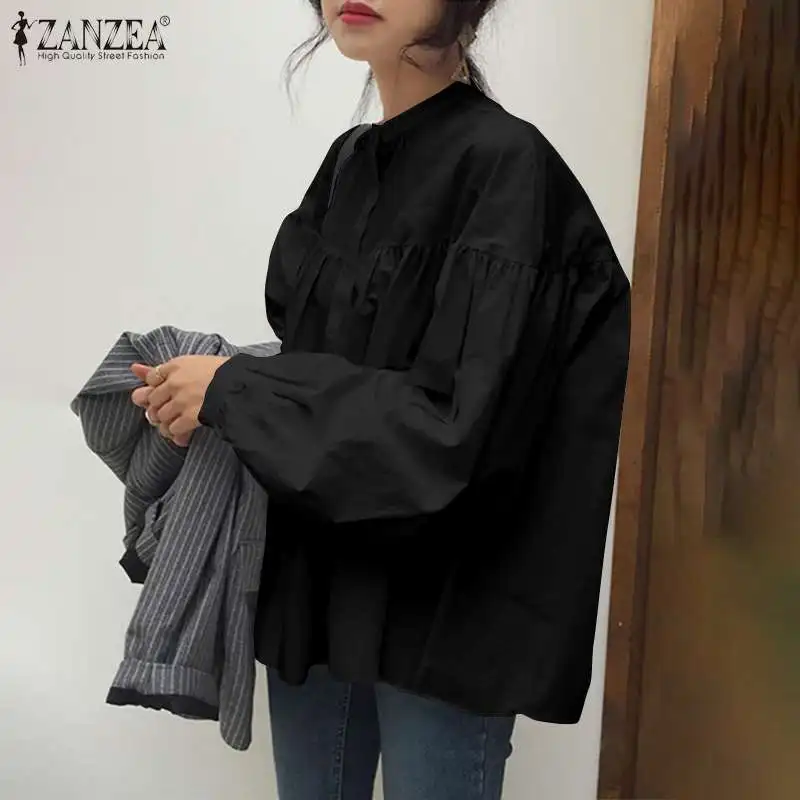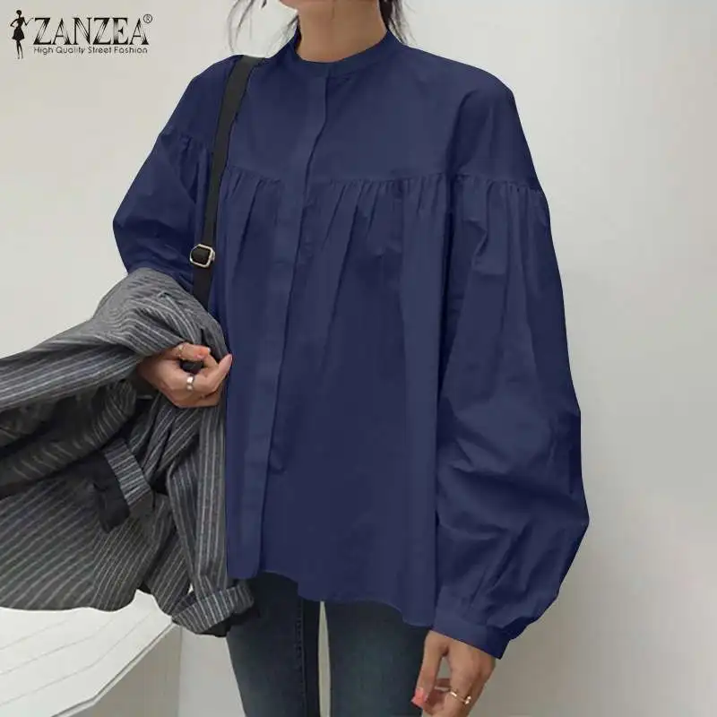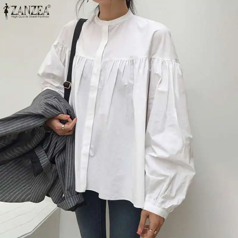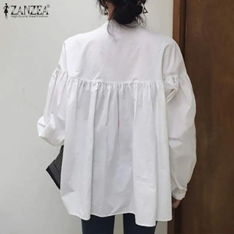 Женские стильные осенние элегантные офисные блузки ZANZEA с длинными рукавами-фонариками, свободные топы, рубашка