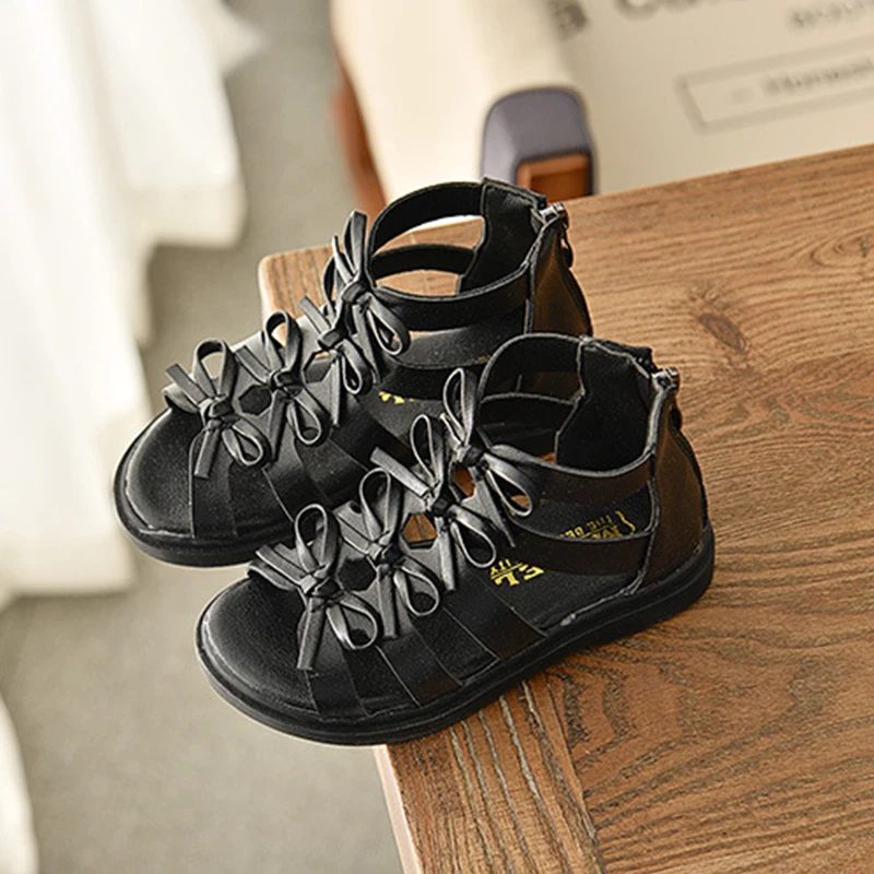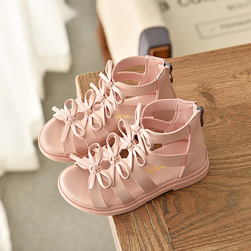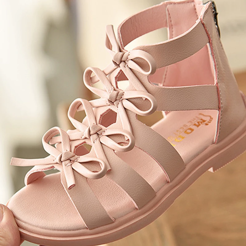 Сандалии-гладиаторы для девочек, летние мягкие детские пляжные туфли с цветочным рисунком