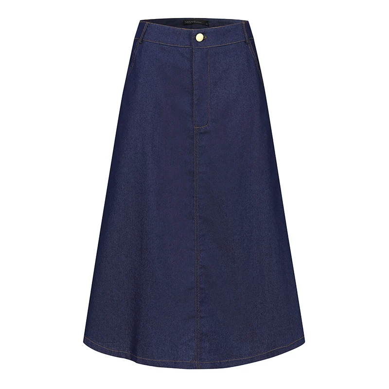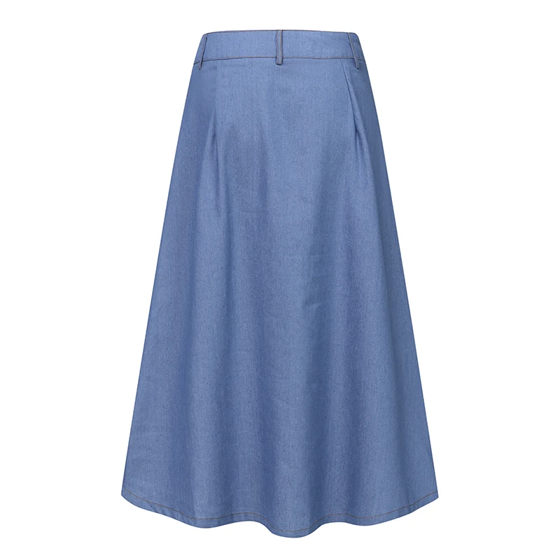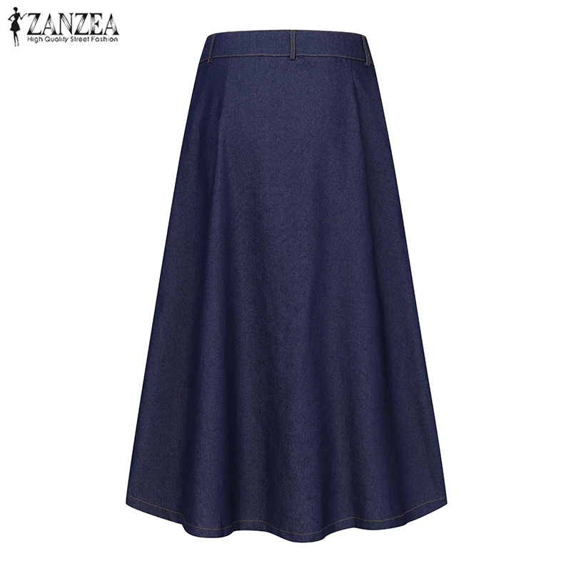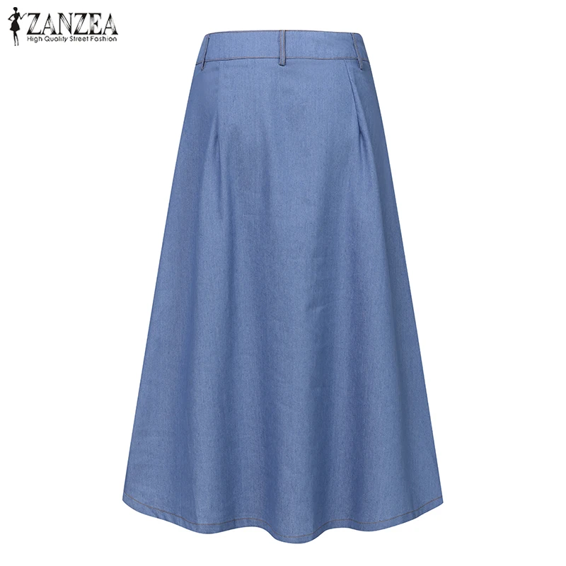Юбка ZANZEA женская джинсовая с завышенной талией и карманами, модная однотонная офисная юбка-трапеция до середины икры, S-образный вырез, на лето-осень