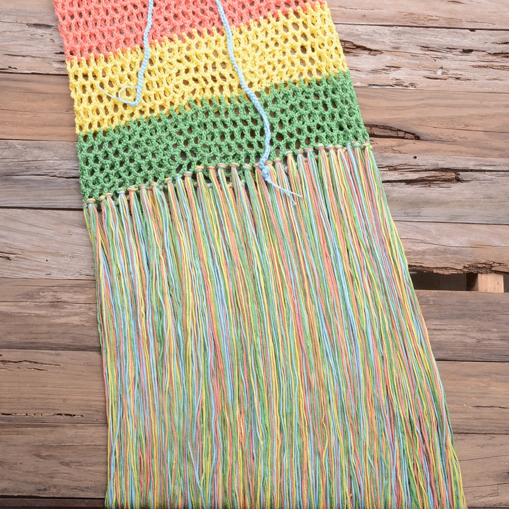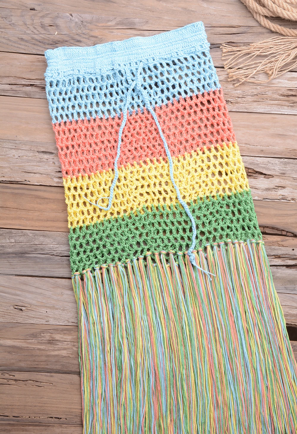 Женская Пляжная накидка, модная туника, бандажные купальные костюмы, вязаное Радужное ажурное платье-бикини с бахромой и юбкой