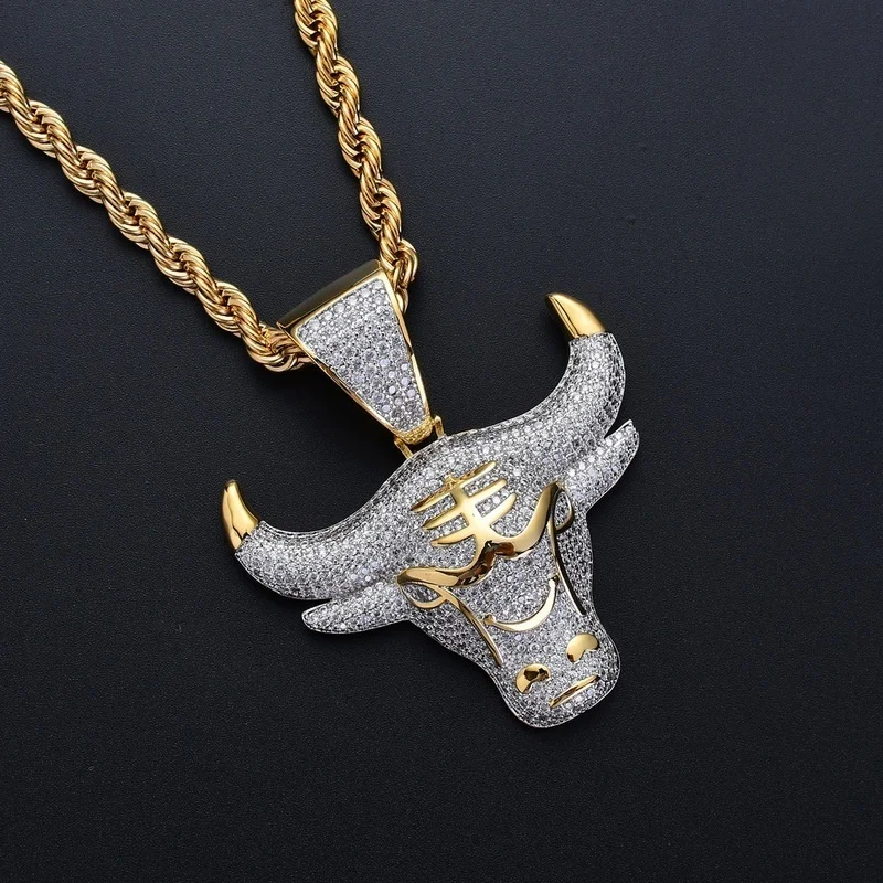 Мужской кулон в стиле хип-хоп с головой быка, кулон медный + AAA ку...
