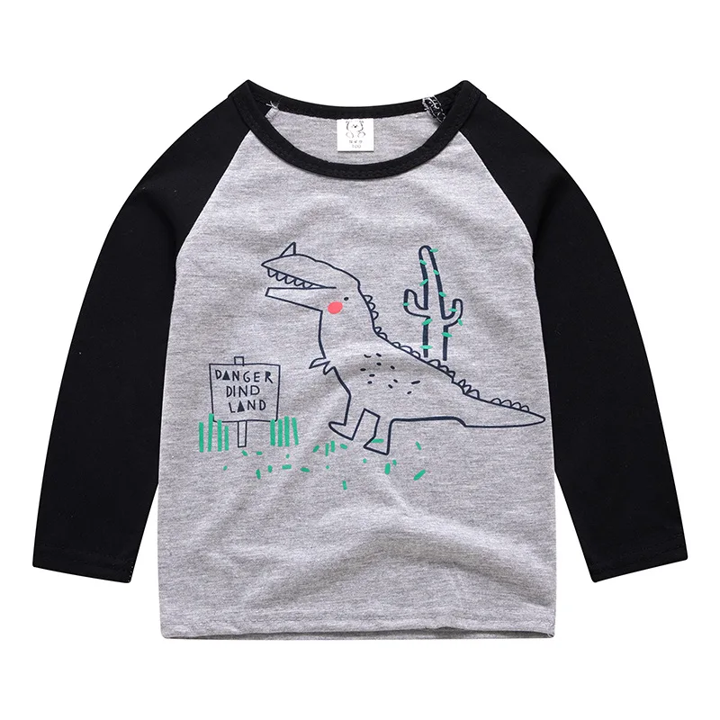 Футболка для мальчиков на весну и осень, детская одежда с длинным рукавом, Модная хлопковая Футболка с украшением в виде динозавра