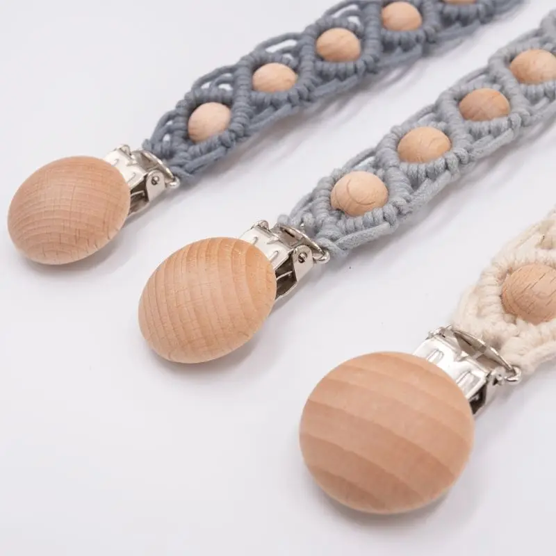 Детский держатель для соски-пустышки, с деревянными бусинами