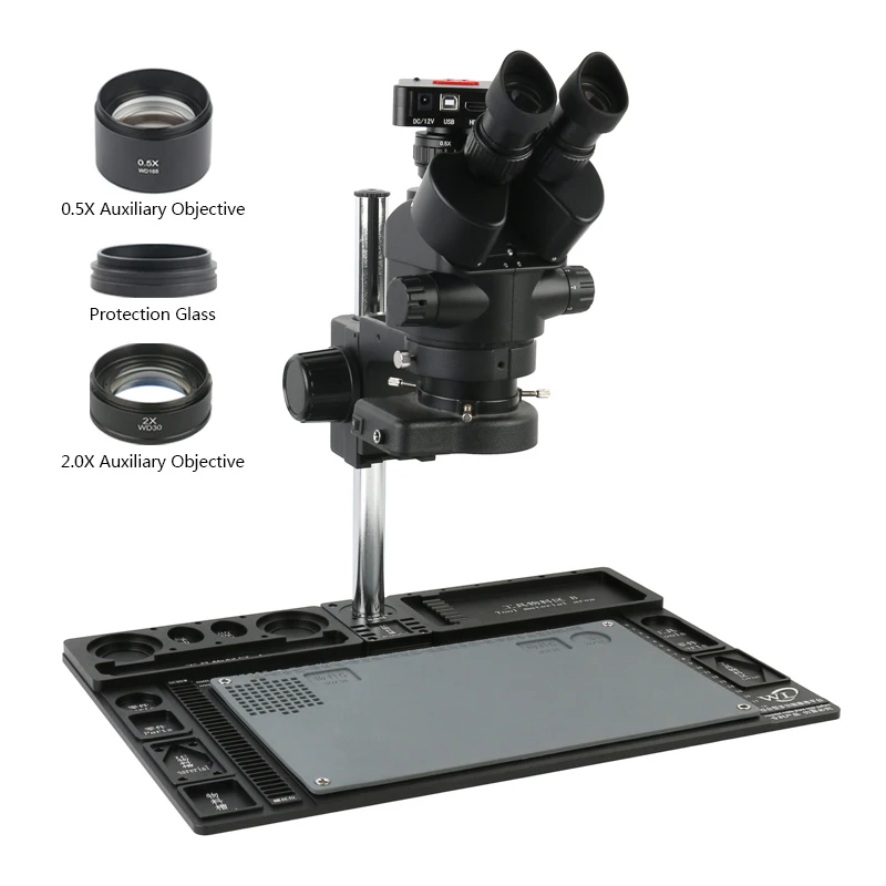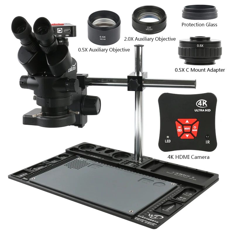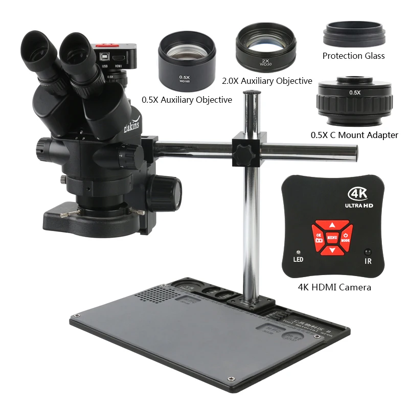 Мультифокусный Тринокулярный стереомикроскоп 1080P 4K UHD, 3,5x-90X, цифровая микроскопическая камера + Многофункциональная подставка из алюминиевого сплава