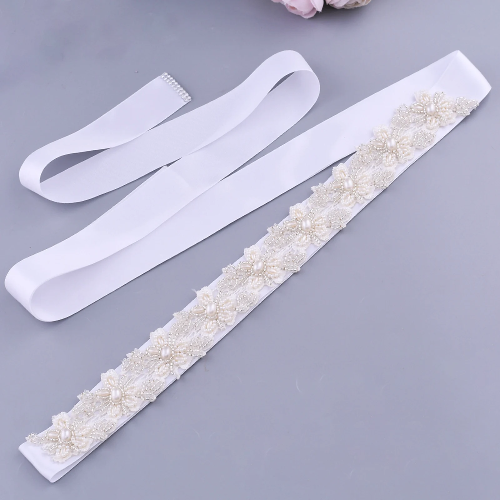 Женский свадебный пояс с бусинами, свадебный пояс цвета слоновой кости с цветочным жемчугом и аппликацией из бисера, свадебные аксессуары для невесты, пояс с жемчугом, Официальный пояс