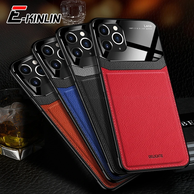 Кожаный чехол для телефона iPhone 13 12 11 Pro mini X XR XS Max SE 2020 8 7 6S 6 Plus, зеркальное стекло, силиконовая Противоударная задняя крышка