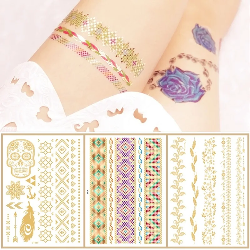 41 вид модных бронзовых женских Временных Тату-наклеек полосы дизайн боди-арт для девочек водостойкие одноразовые временные татуировки