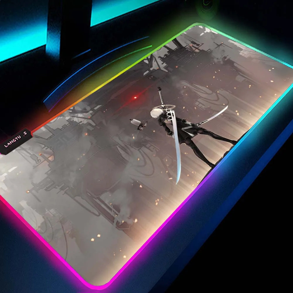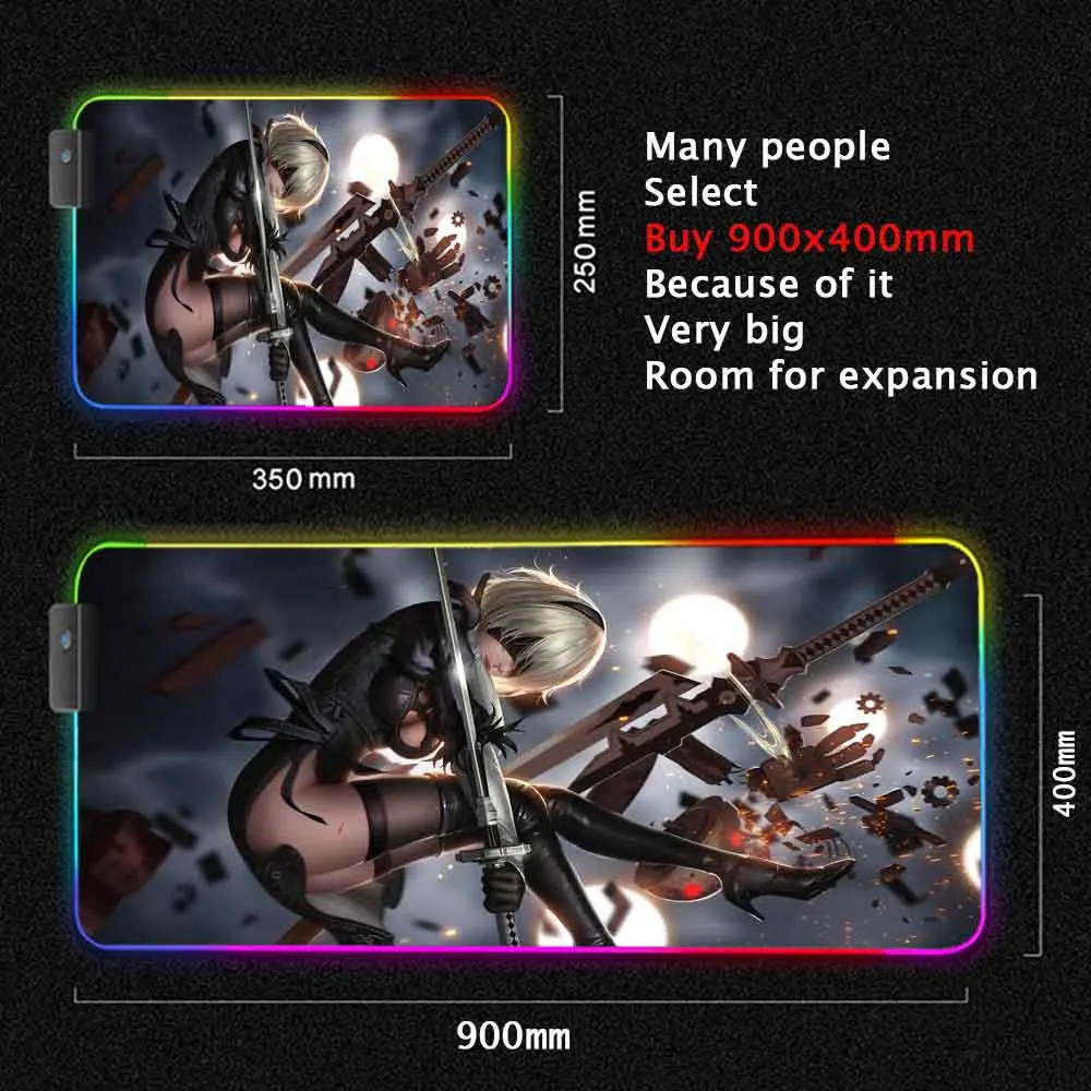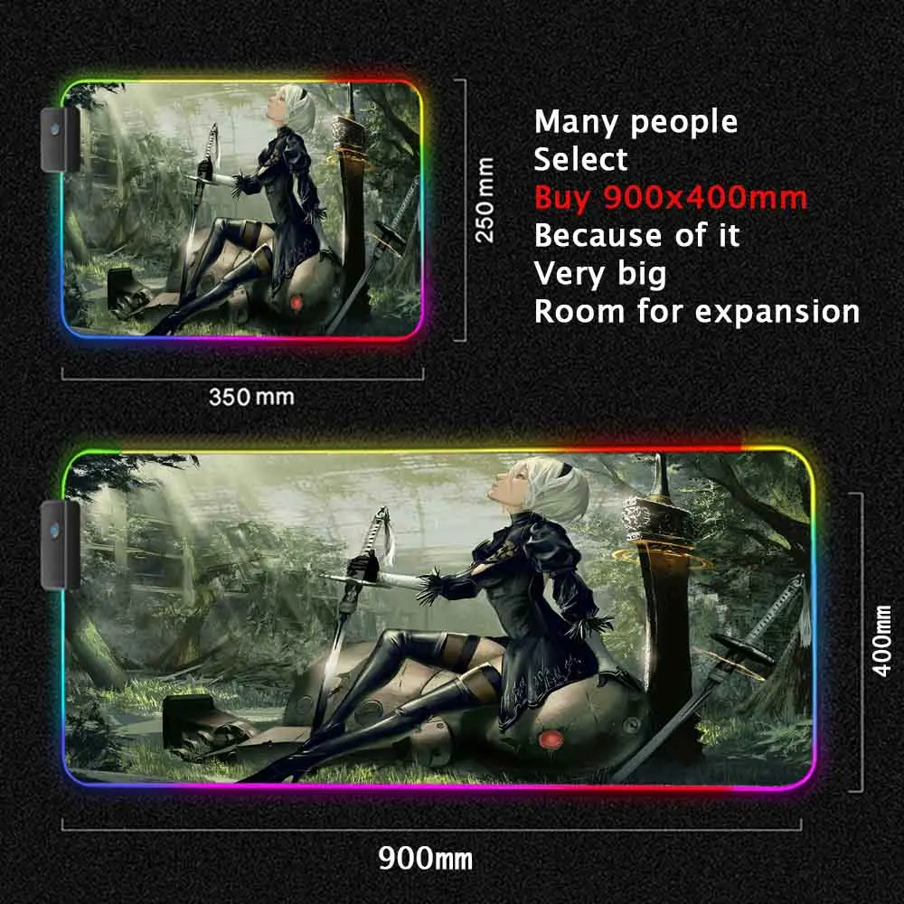 Коврик для мыши Nier Automata, игровой коврик с подсветкой для компьютера, Rgb, размер Xxl