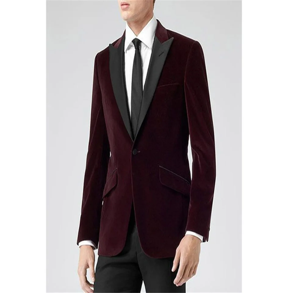 2020 бархатный мужской смокинг для жениха бордового цвета, свадебные костюмы для мужчин, костюм для лучшего мужчины, комплект из 3 предметов, смокинг для жениха (пиджак + брюки + галстук-бабочка)