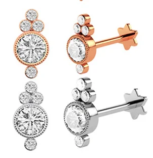 Новый ухо козелка губ губная серьга-гвоздик чешские серьги слуховая косточка ногтей и украшения для пирсинга, цветок с внутренней резьбой CZ драгоценный камень Монро 16G спирали