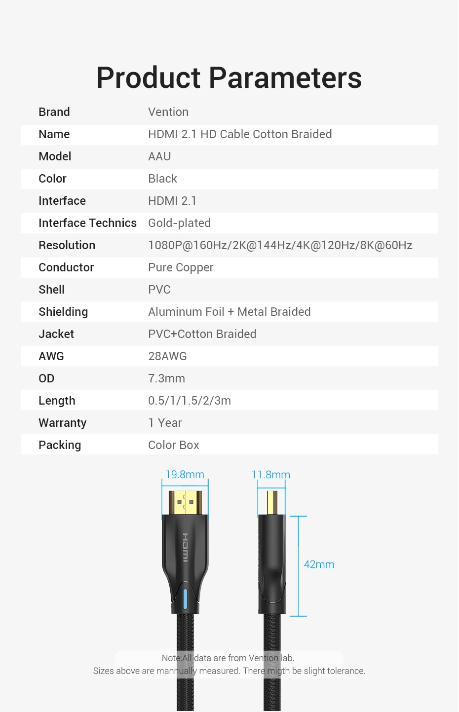 Vention HDMI 2,1 кабель 5 м 120 Гц 4K3D высокоскоростной 48 Гбитс H...