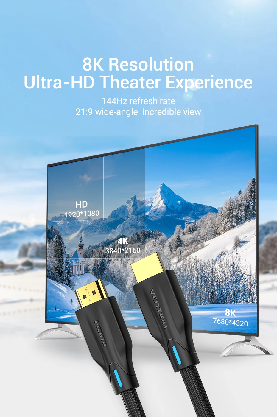 Кабель HDMI 2,1 Vention для Xiaomi Mi Box, кабель HDMI 8K60 Гц, 4K120 Гц, 48 Гбитс, цифровые кабели для PS5, PS4, HDMI сплиттер 8K HDMI 2,1