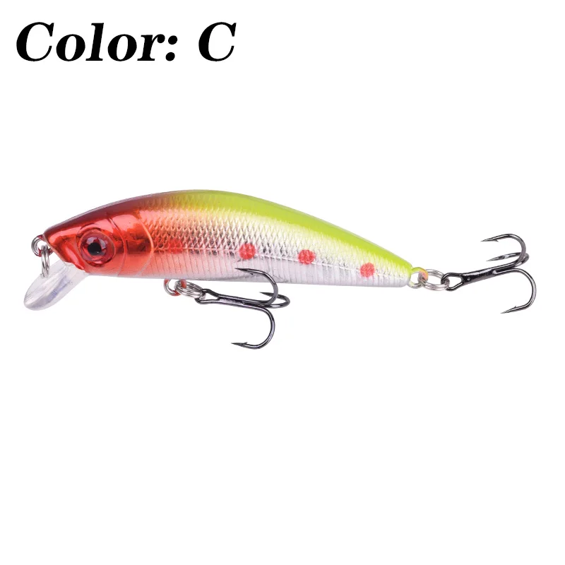 Тип приманки: Рыболовная Приманка MinnowВес: 7,5 гДлина: 70 ммГлубина погружения: 0,2-2 мКрючок: 6 # Тройной КрючокЦвет: 10 различных цветовПосылка:1 * рыболовная приманка