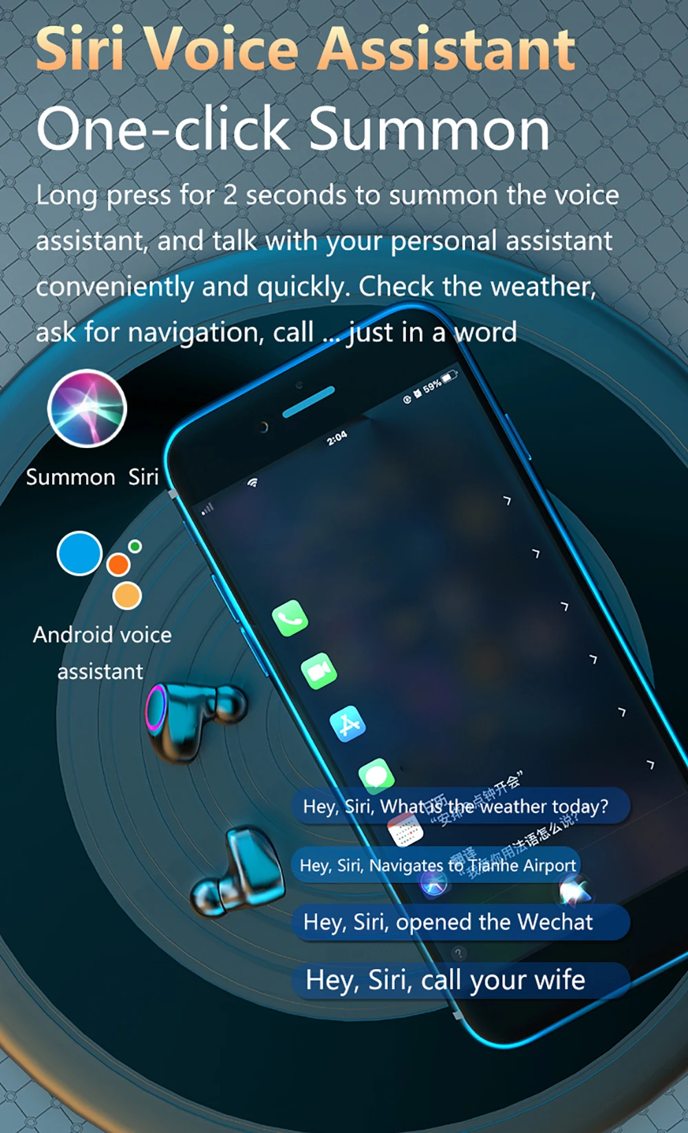 Беспроводные наушники с сенсорным управлением, Bluetooth 3500, TWS, 5,0 мАч