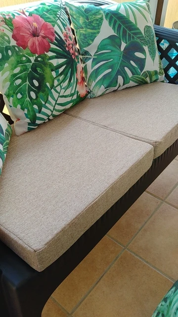 Me han encantado!! Suuuper comodos y de calidad excelente. Yo los he comprado para los sofas de mi terraza. Son de espuma dura no de estas de mala calidad que en cuanto te sientas te hundes. El color muy bonito tal cual se ve en las fotos un beige oscuro. Y las medidas exactas. Sin duda una compra de la que no te arrepentiras