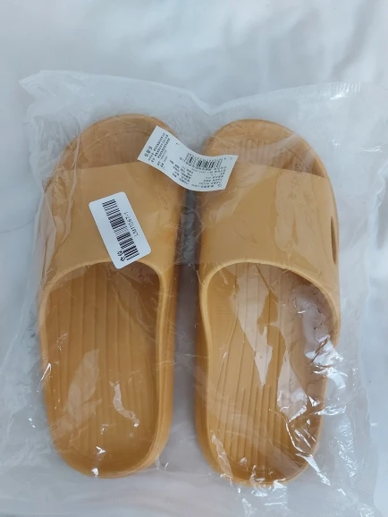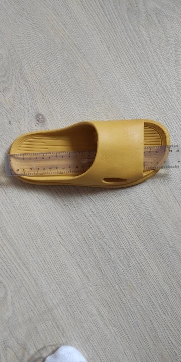 Специально заказала разные тапки.У меня стопа 22.5, беру всегда про запас,чтобы и с носком и свободно было. Этот, место для стопы 23.5,комфортно. Но, не понравился цвет, какой то грязный или даже горчичный, а не жёлтый. Лучше бы другой заказала. По мягкости тоже не особо понравились. Самые мягкие- это розовые. Вот они прекрасны на мой вес 60 кг.Эти средние по мягкости, а вот самые толстые- самые жёсткие. Возможно тут вес человека ещё роль играет. Чем больше весит,тем лучше проминается и сохраняют форму. Но мне ни цвет, ни мягкость не понравились, зато форма и дизайн хорошие.