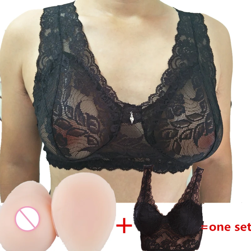 Горячая Распродажа один комплект, бюстгальтер с накладными грудными кружевами и карманами, косплей, трансгендер, поддельные груди для трансвеститов, мастэктомия, бюстгальтер, нижнее белье