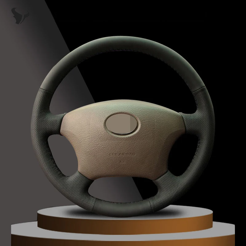Сшитая вручную черная оплетка рулевого колеса из искусственной кожи для Toyota Land Cruiser Prado 120