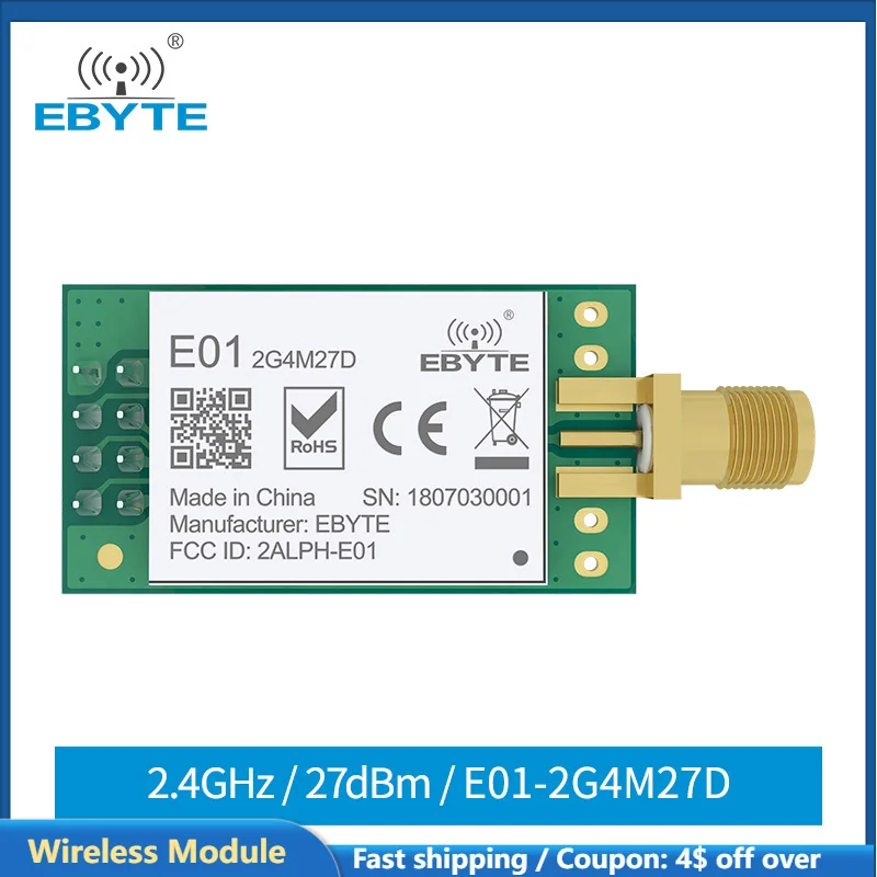 Модуль беспроводного приемопередатчика nRF24L01 PA LNA nRF24L01P, 2,4 ГГц, 27 дБм, большие расстояния, маленький размер для умного дома, E01-2G4M27D