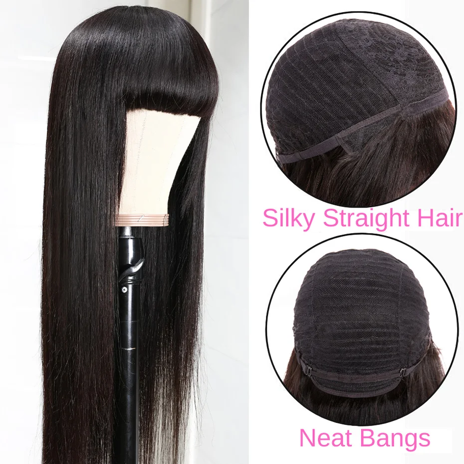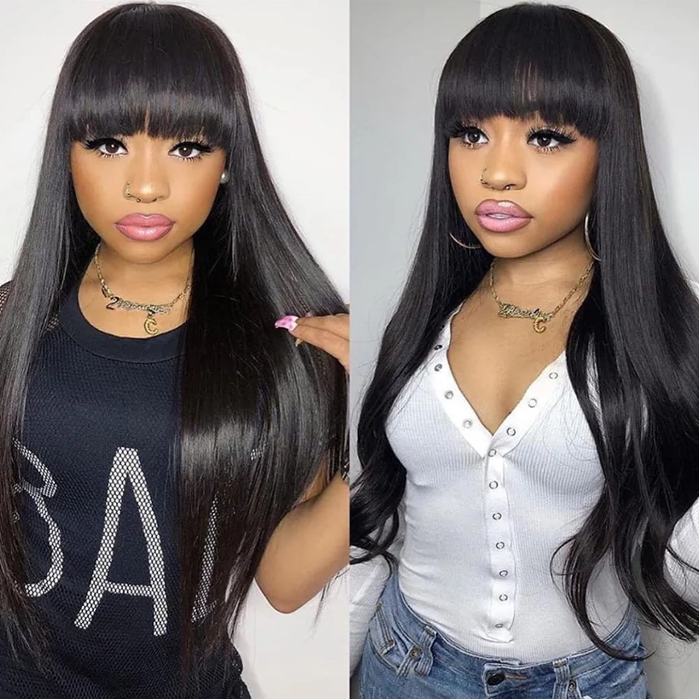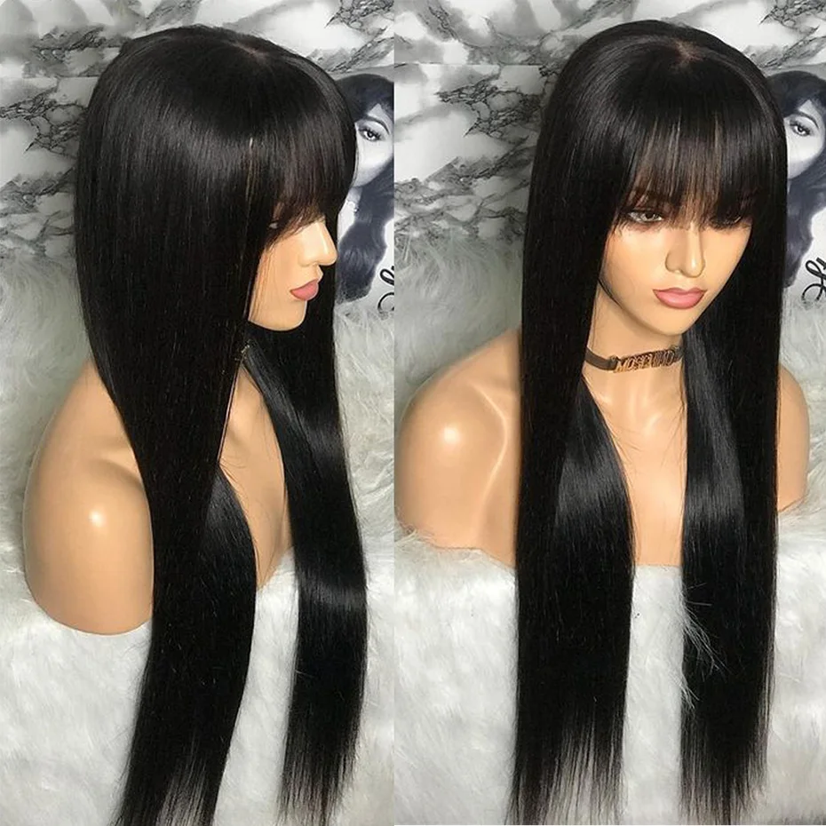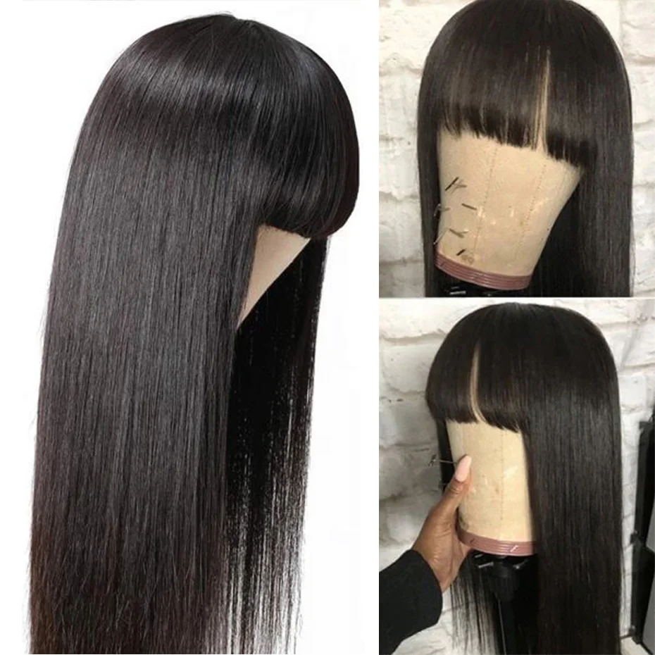 Парик из натуральных волос, прямой малазийский прямой парик с челкой, натуральный цвет, для женщин, безклеевые парики
