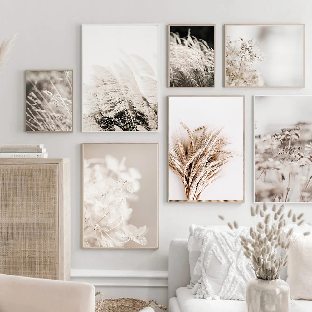 Осеннее растение, бежевый язычок листья пшеницы, скандинавские постеры и принты, настенное искусство, Картина на холсте, домашние картины для гостиной, Декор