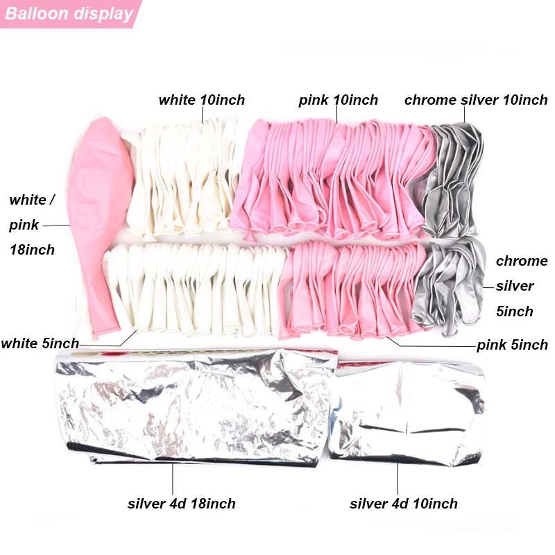 ColorMacaron Pink/White/Chrome Silver Ballon